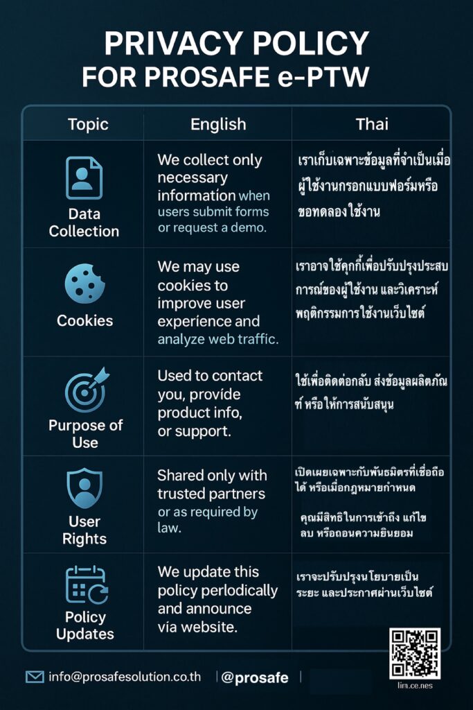 🛡️ Privacy Policy for Prosafe Solution(e-PTW) นโยบายความเป็นส่วนตัวสำหรับระบบ Prosafe Solution(e-PTW)